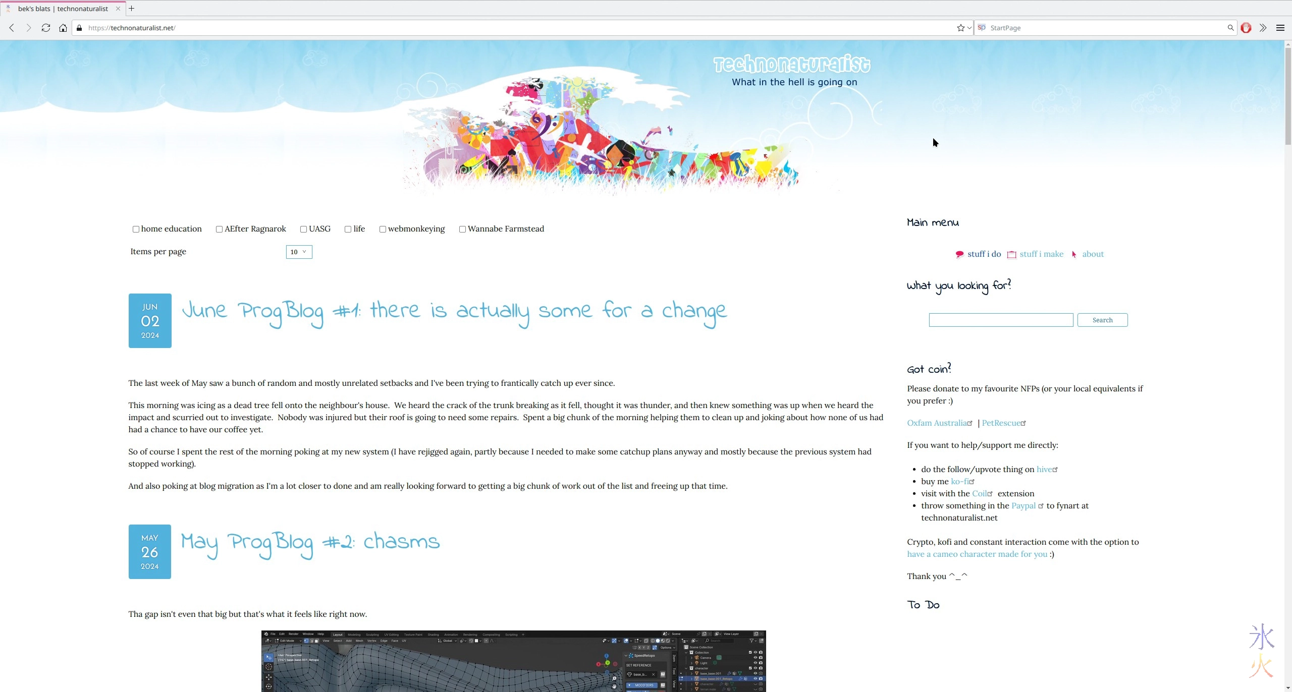 posted on: Sunday, 9 June 2024 @ 10:40pm inPart 1 happened over the course of weeks or months a couple of decades ago when I migrated to Drupal from livejournal (I didn’t really note how long it took partly because I wasn’t interested at the time and mostly because I was trying to get through that cringey era as quickly as possible).