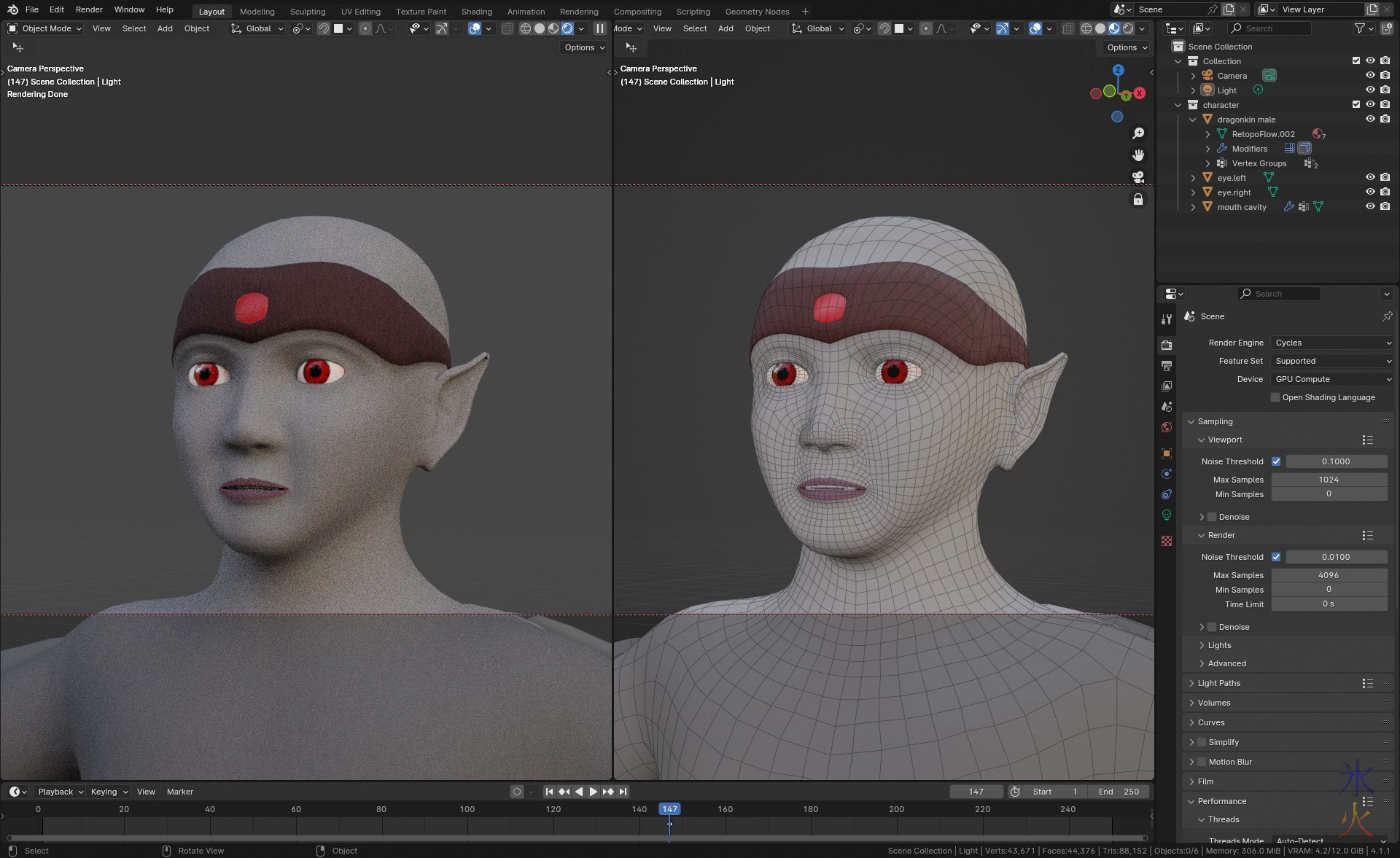 I tried to be smart and use splines and experimented with geonodes for making the horns but I’m not smart enough for that so they’ll be getting modelled normally. I think I need to pull out the beginnings of the horns where they’re connected to the crest as they’re an awkward shape that should be close enough to the same for all characters and then just leave the “buds” there to expediate horns per character when I get around to it.