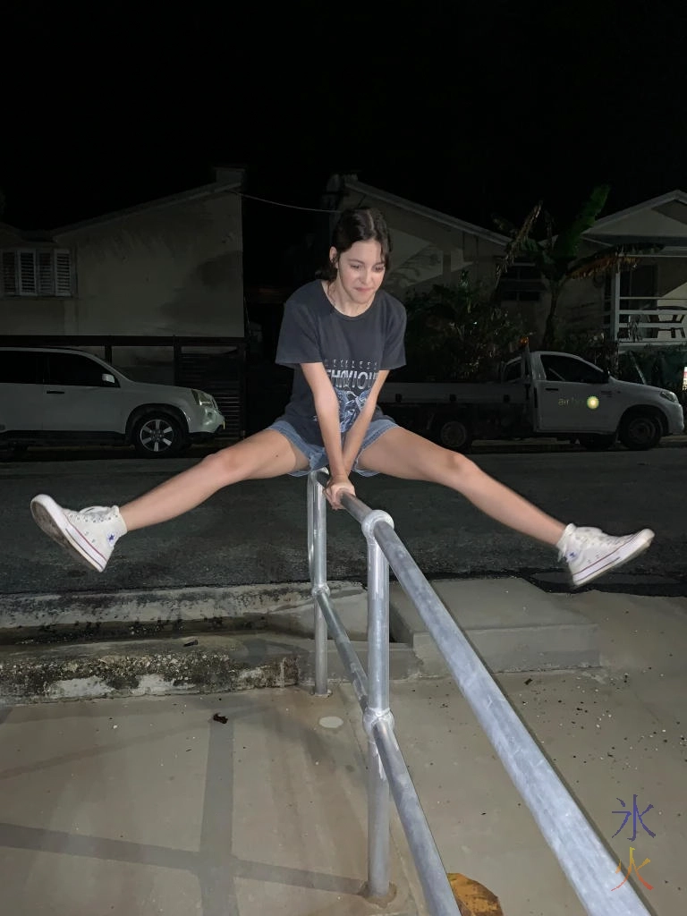 He still gets childhood nickname from all of us every so oftenOur island trip ended with a fun photoshoot around the new murals at The Barracks (none of which I felt were postable mostly due to the glare off the very shiny paint), 17yo finding a spot to do her straddle hold, and the boys “waterbending” after hoping for a final swim at the Cove and being unable to because the tide was slightly too high.