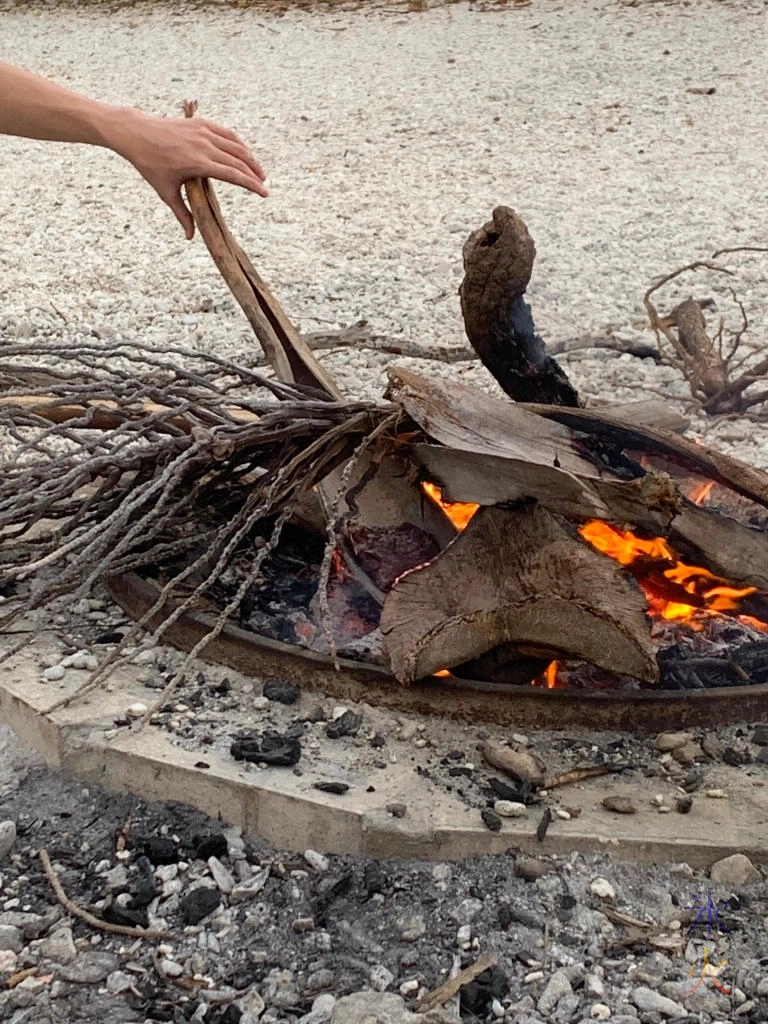 At some point a firepit had been installed on the beach to make the campfires a bit safer. The boys in particular had a great time helping build it and couldn’t resist constantly poking it.