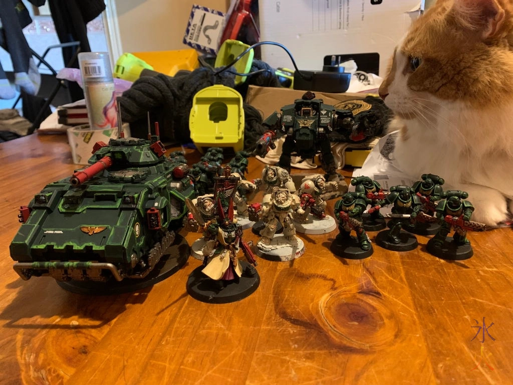 15yo acquired and painted a tank and then lined up the models for me and the cat decided he wanted in on the action.