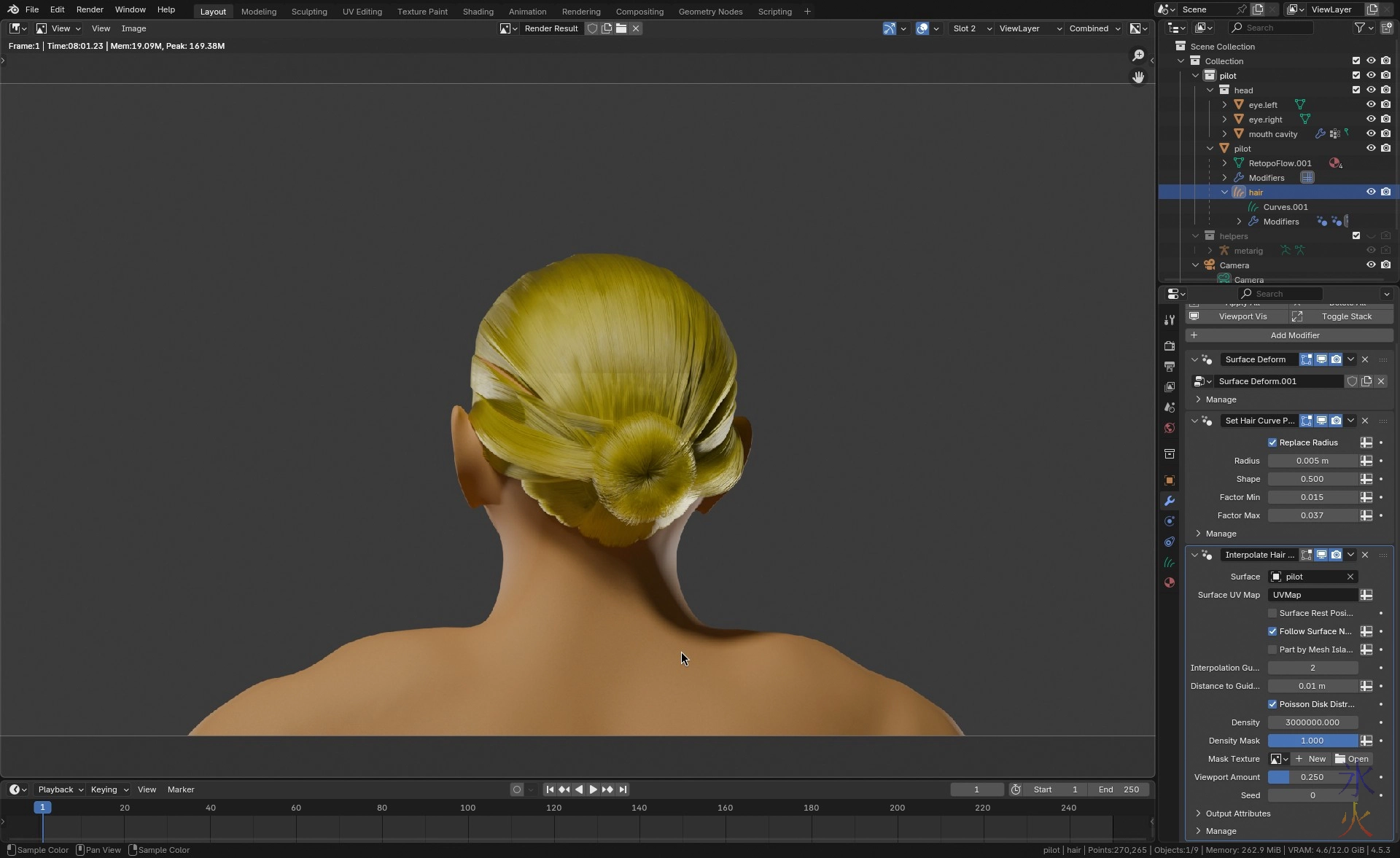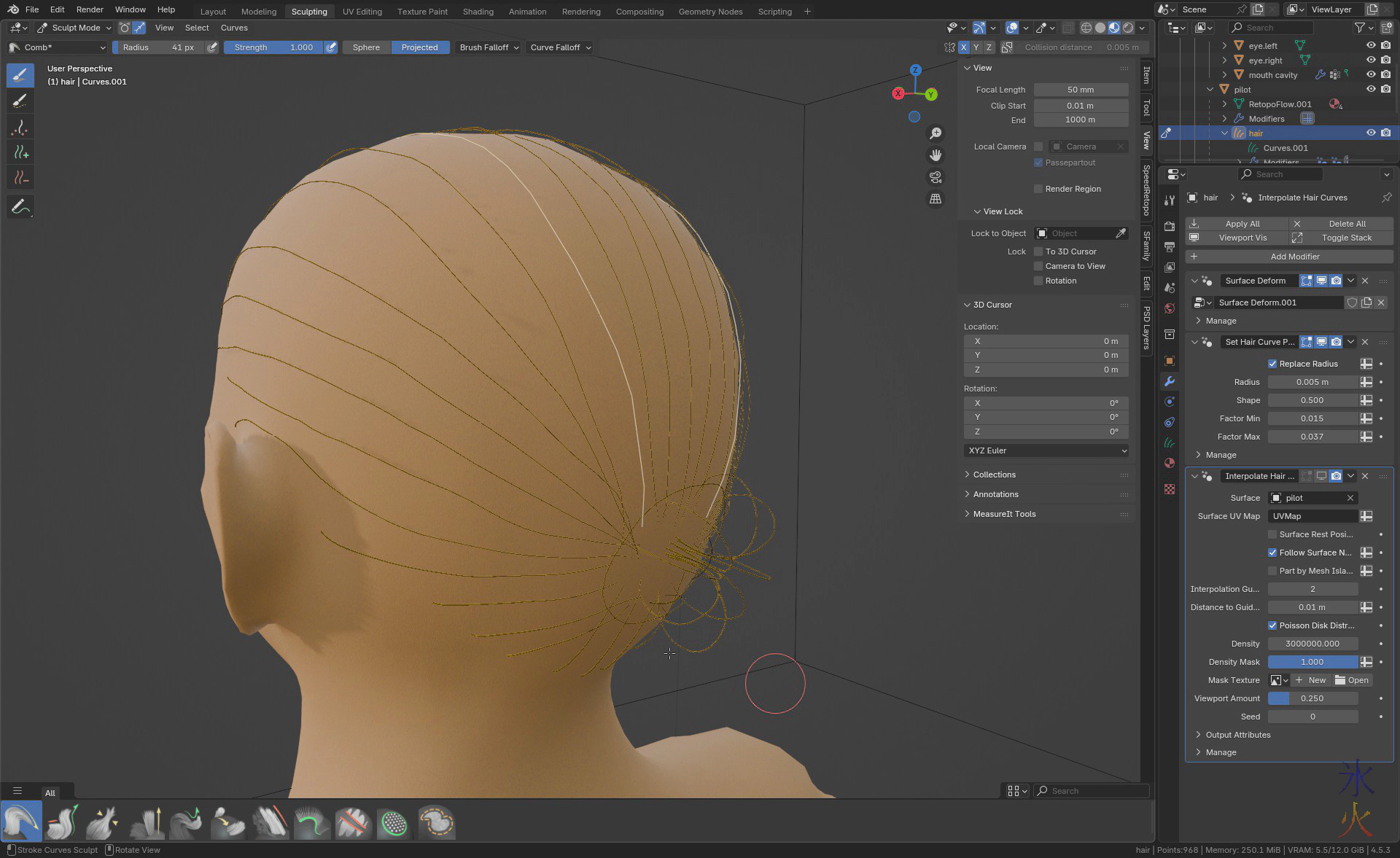 Meanwhile I fixed that particular one by stuffing in another hair curve where the gap was and moved on to eyes and eyelashes which is always fun on a blonde character.