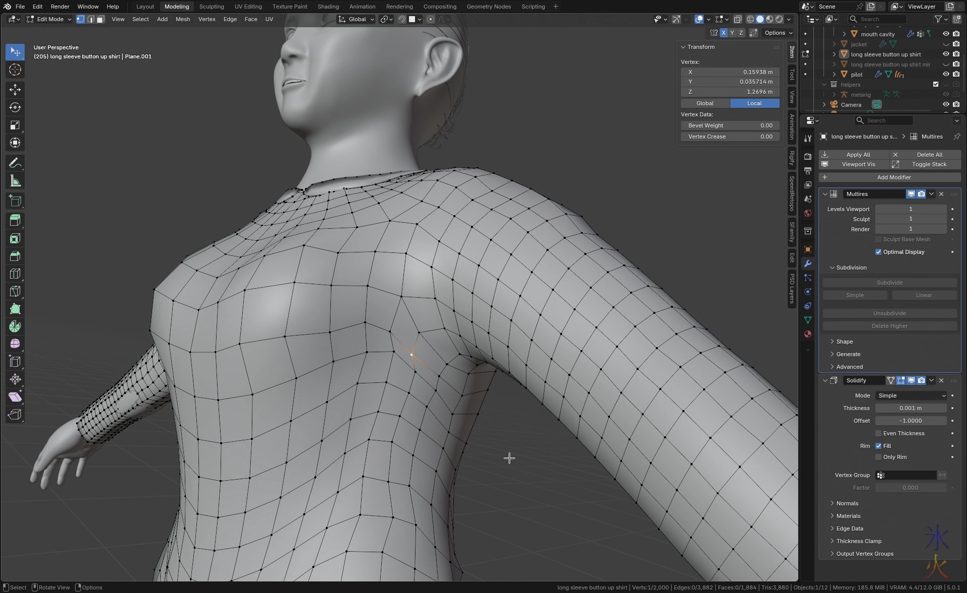 I forgot to “apply base” on the multires sculpt before I started making the shirt so I actually made the shirt on top of the default proportions instead of the character’s proportions (a lot bigger) and inadvertently turned her into an adult movie actor.