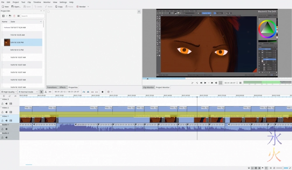 Getting rid of all the pauses and timelapsing the video is easy. The yellow composite layer in the screenie is only there because for whatever reason the preview skips and stutters and carries on when there’s a title clip, I should be able to remove it before rendering. If I didn’t have a plan which involved trying o accumulate a couple of steem for the Hayrunners project, I’m not sure that I would post this. Maybe it might be interesting if you like watching flats very slowly getting depth added despite being spend up 2000%? It just seems kind of boring after watching the more fun and dynamic drawings that spodey and scrawly have been posting videos of.