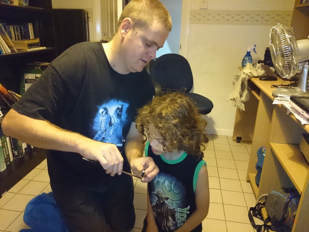 JJ showing 9yo how to examine razor’s edges. Or something.